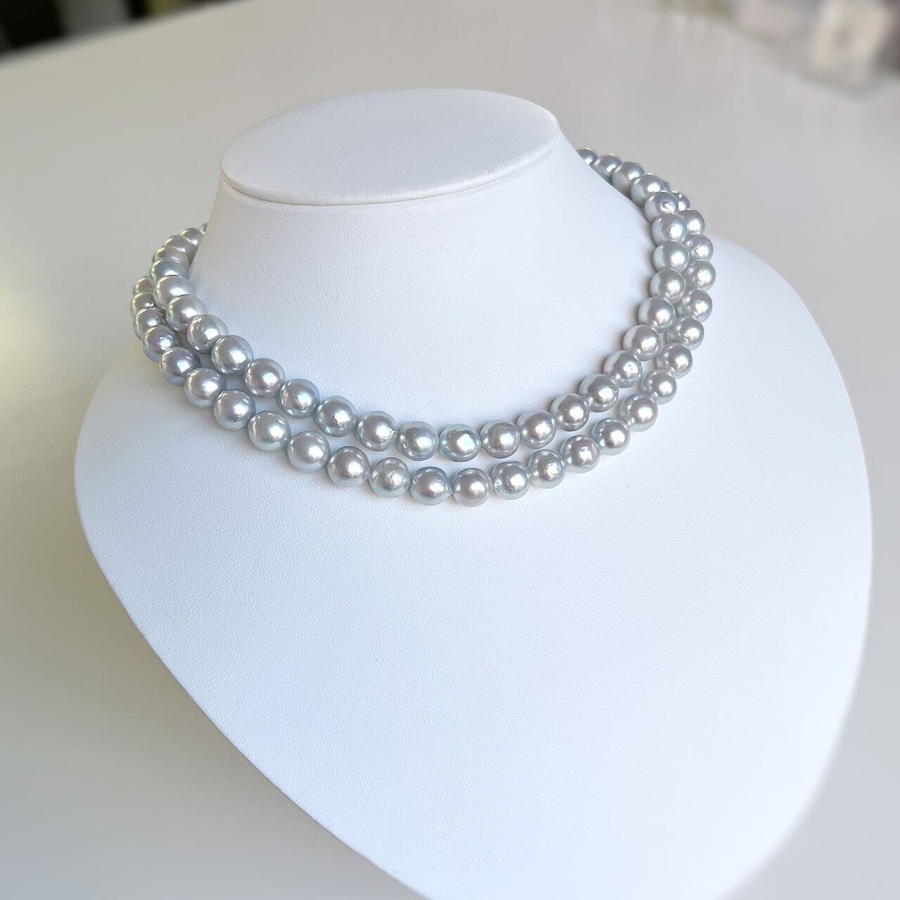 生まれたままの自然な美しさ、青みのある神秘的なグレーカラーがとても魅力的なパールネックレスです。